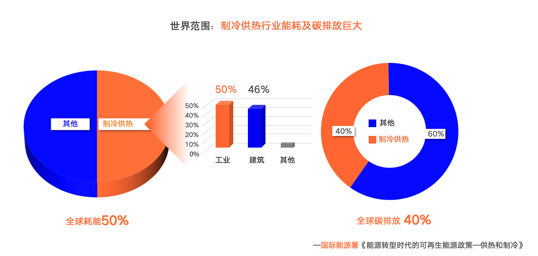 隨著雙碳政策的進(jìn)一步完善和落實,各地區(qū)正在持續(xù)推進(jìn)低碳環(huán)保和節(jié)能減排的工作。其中,制冷供熱行業(yè)的能耗和碳排放量巨大,占全球能耗的50%和全球碳排放的40%。