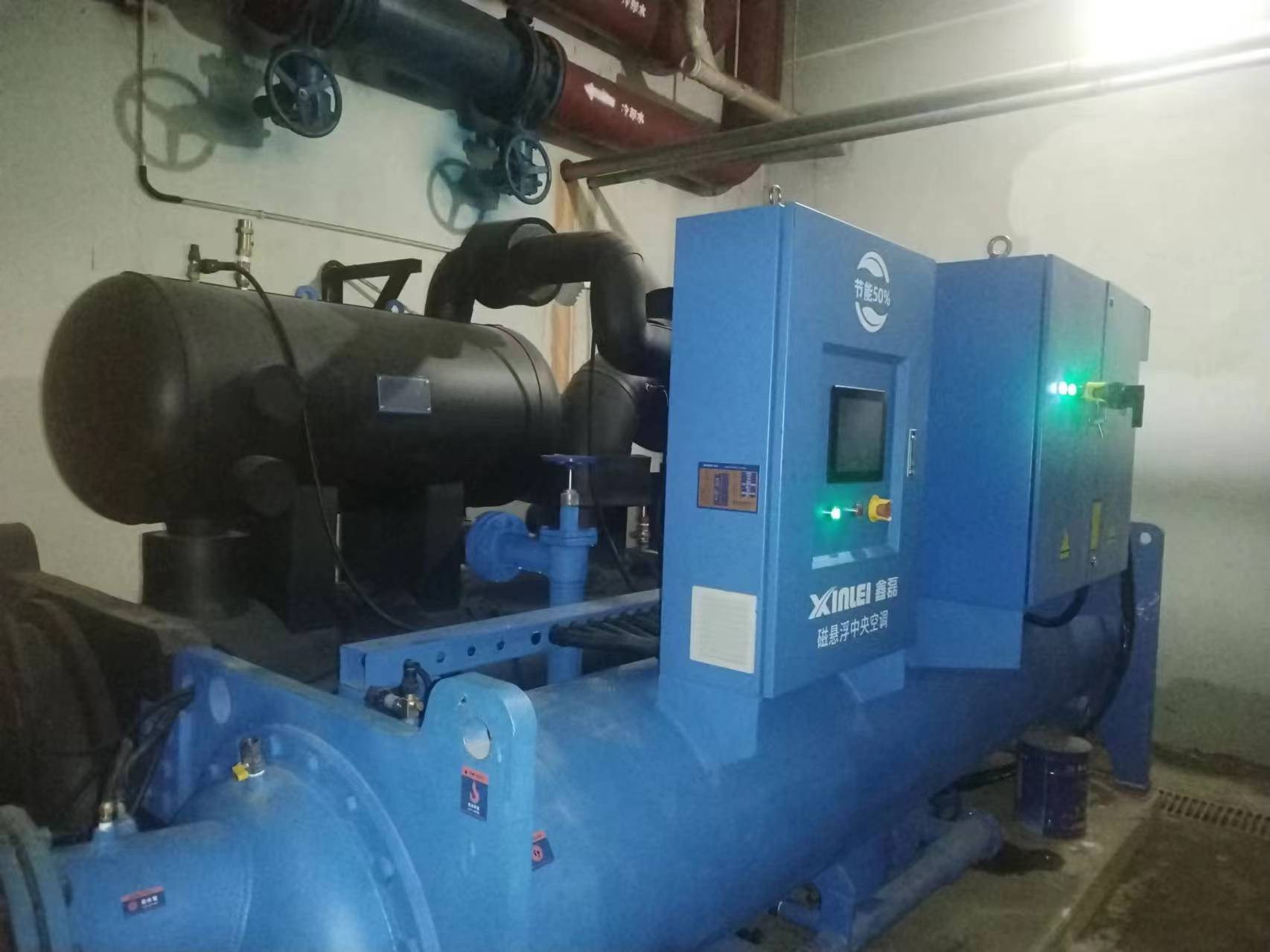 經(jīng)過多方考察和對比,最終安裝了兩臺150RT的鑫磊磁懸浮中央空調(diào),正好滿足其三層(每層50*70*6m)機械加工車間。