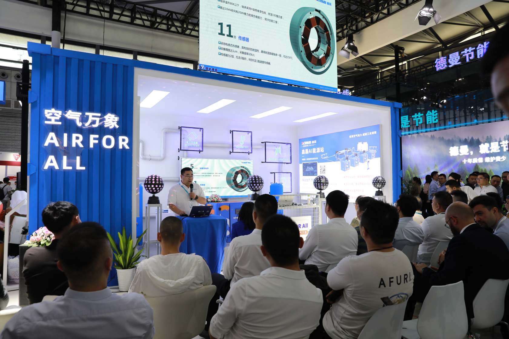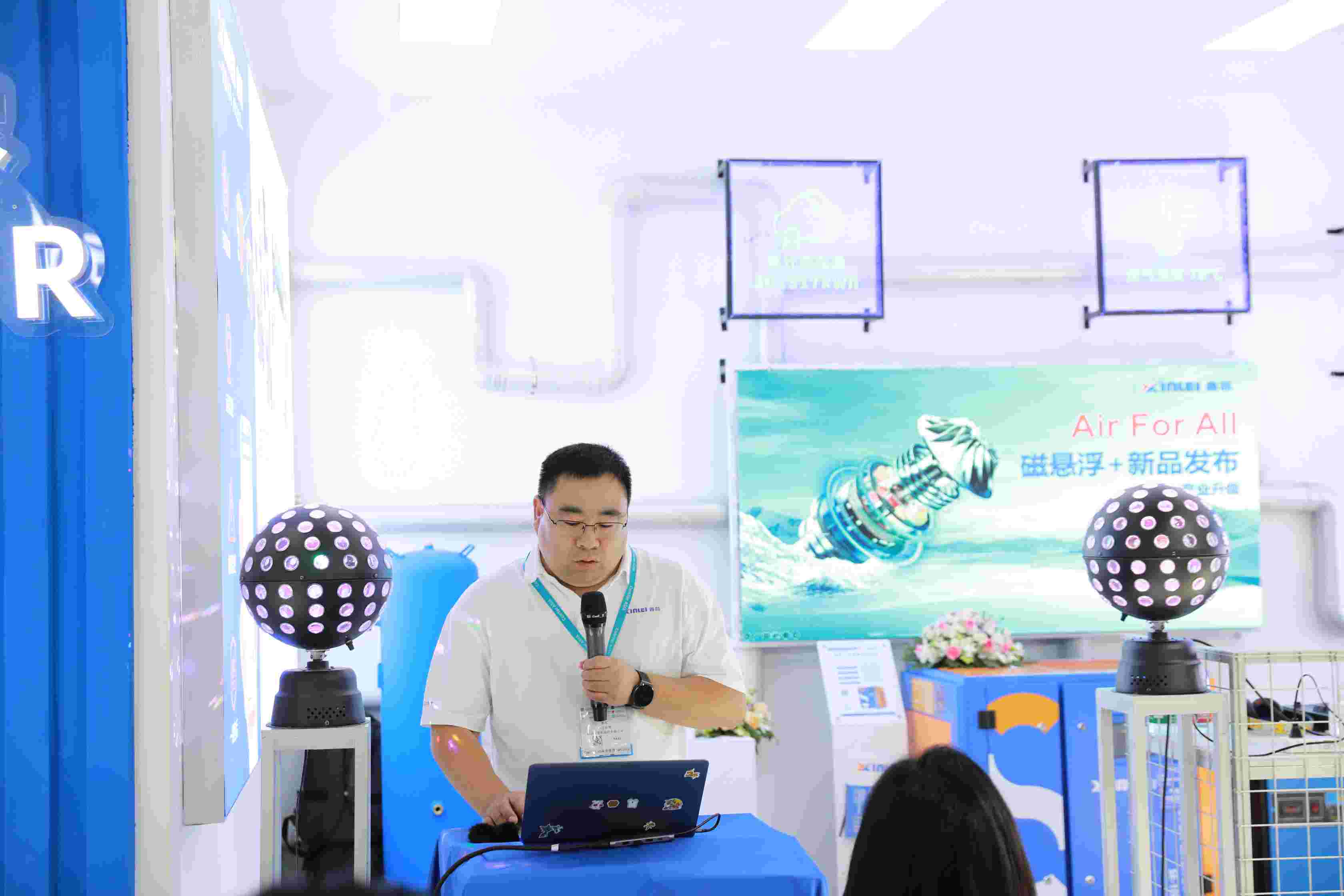 新品真8bar鑫磊磁懸浮離心壓縮機、AI能源氣站等科技和時尚的展位設計吸引了大量行業(yè)專家咨詢交流,他們紛紛駐足觀看并對這些設備和技術(shù)表示了濃厚的興趣。
