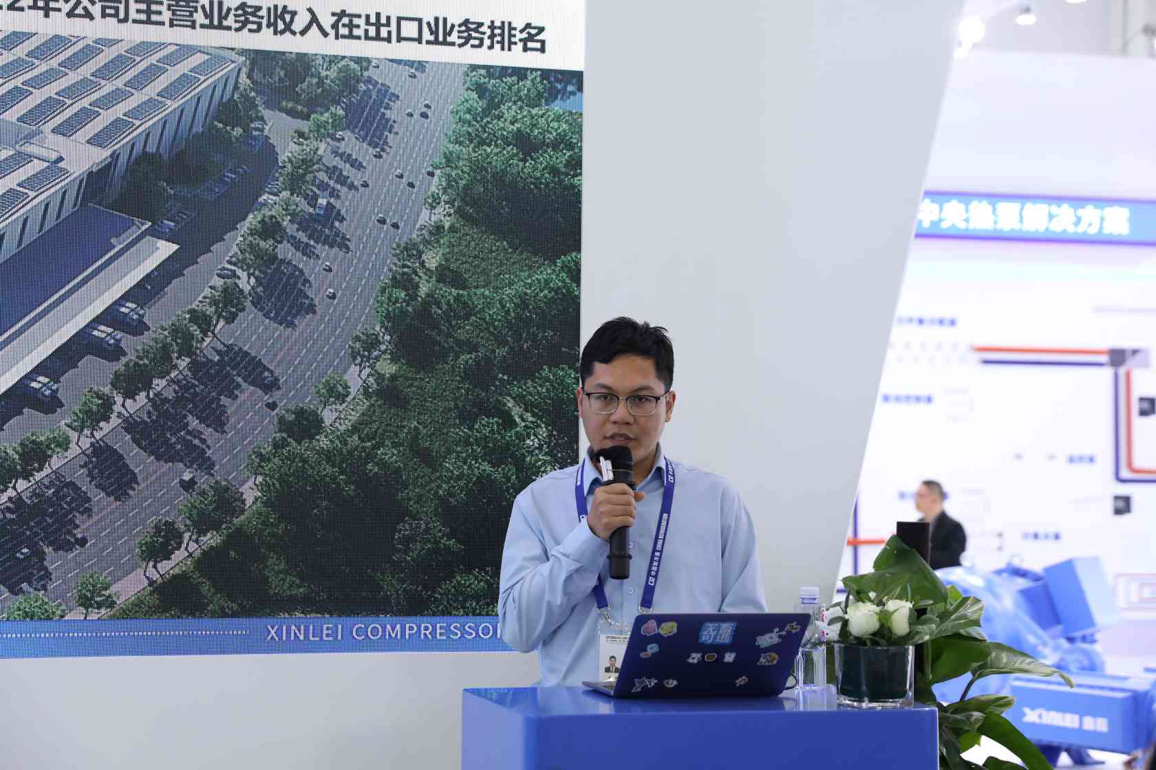 鑫磊股份始終聚焦“碳中和科技創(chuàng)新路徑”,通過深化品牌建設、優(yōu)化售后服務管理體系和產學研一體化等戰(zhàn)略實施,以AI技術賦能傳統(tǒng)節(jié)能領域的應用創(chuàng)新,深入挖掘終端客戶的綠色轉型需求,旨在一同帶動終端客戶向綠色化、數智化全面發(fā)展。發(fā)布會上,鑫磊股份熱泵售前技術支持經理劉亞雷為我們帶來《聚焦節(jié)能,共贏雙碳——鑫磊“磁懸浮+”解決方案》的發(fā)布。